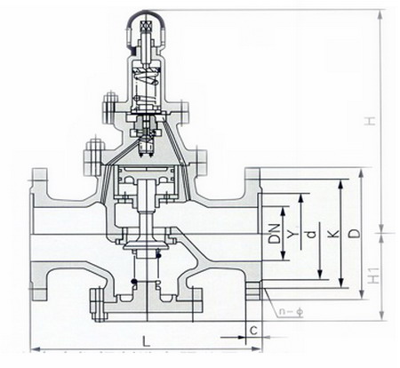 本系列減壓閥屬于先導(dǎo)活塞式減壓閥.由主閥和導(dǎo)閥兩部分組成.主閥主要由閥座、主閥盤(pán)、活塞、缸套、彈簧等零件組成。導(dǎo)閥主要由閥座、閥瓣、膜片、彈簧、調(diào)節(jié)彈簧等零件組成。通過(guò)調(diào)節(jié)調(diào)節(jié)彈簧壓力設(shè)定出口壓力,利用膜片傳感出口壓力變化,通過(guò)導(dǎo)閥啟閉驅(qū)動(dòng)活塞調(diào)節(jié)主閥節(jié)流部位過(guò)流面積的大小,實(shí)現(xiàn)減壓穩(wěn)壓功能。